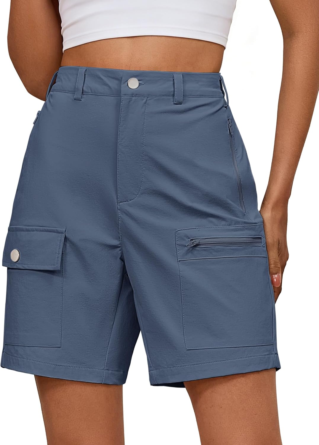 luvamia Hiking Shorts for Women Cargo Lightweight Water Resistant Elastic Waist Golf Casual Summer 7 Inch Inseam Shorts