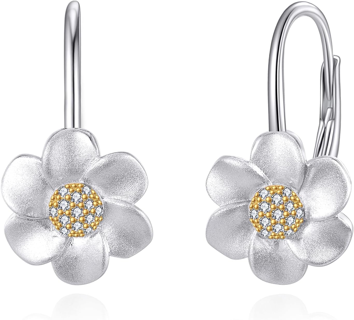 POPLYKE Daisy Earrings 925 Sterling Silver Daisy Jewelry for Women Flower Leverback Earrings Birthday