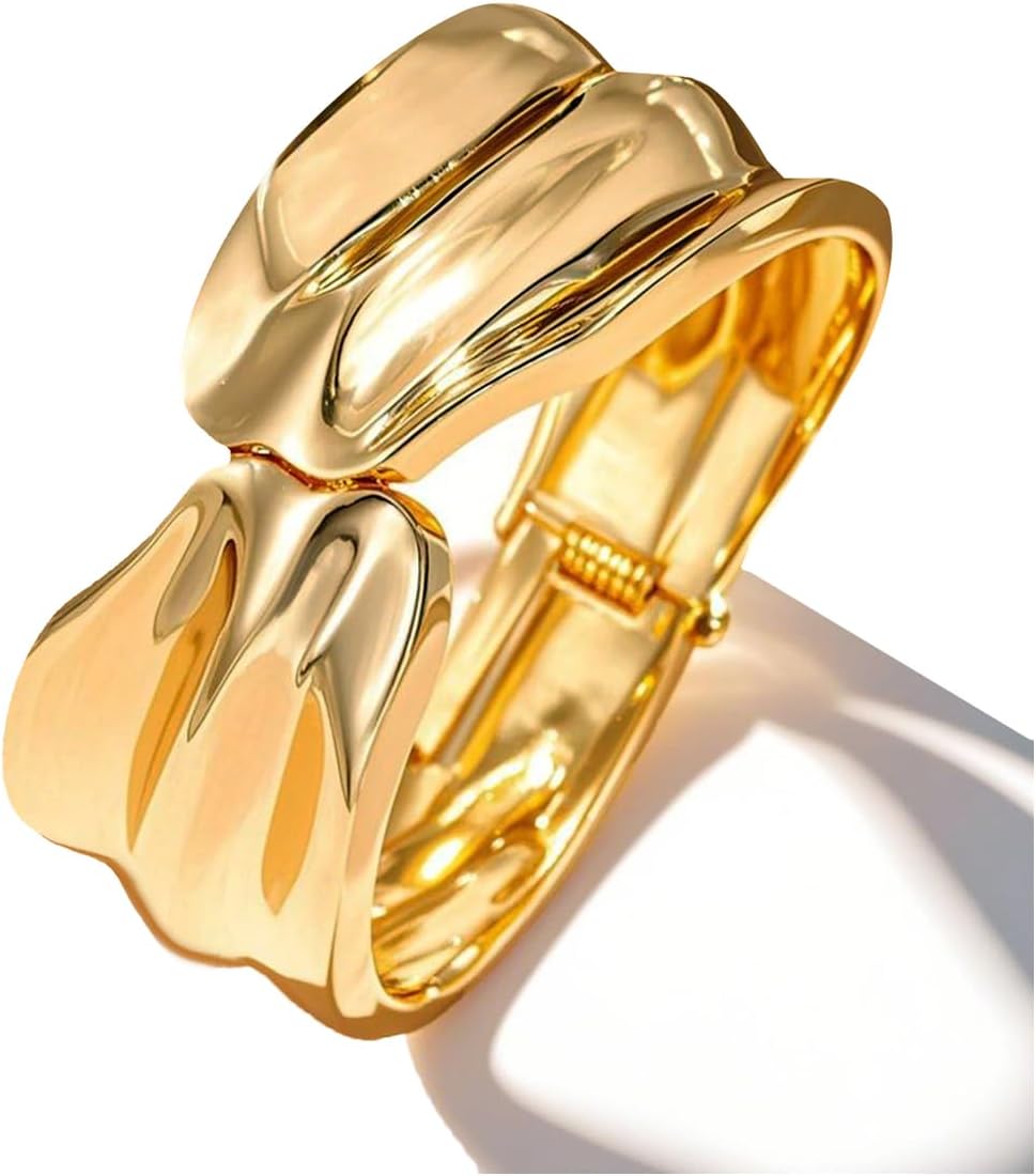 Gold Chunky Bangle Bracelet for Women Adjustable Twist Cuff Design Tarnish-proof Stackable Jewelry Gift