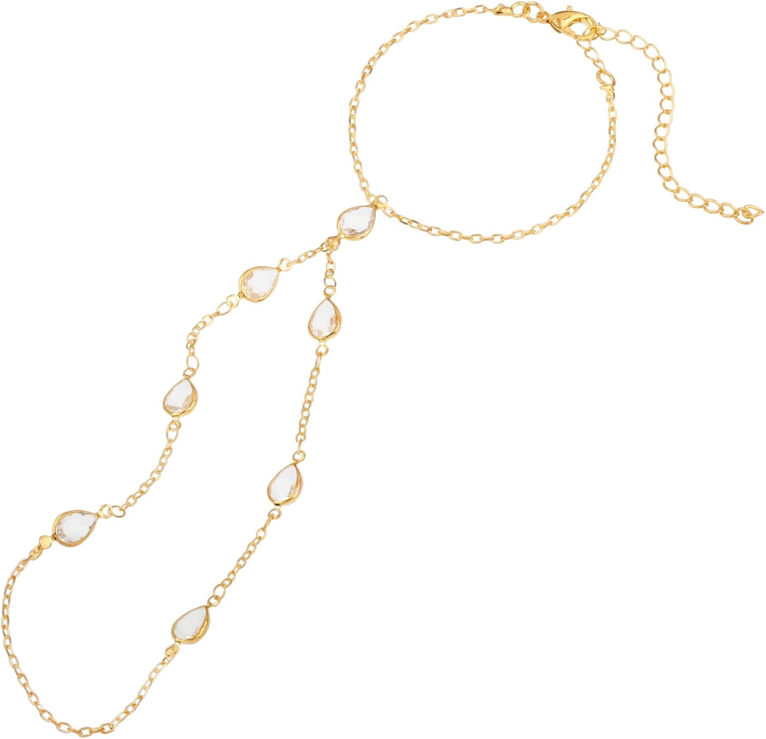 CZ Diamond Finger Ring Bracelet Hand Chain for Women, 14K Gold Plated Slave Bracelets