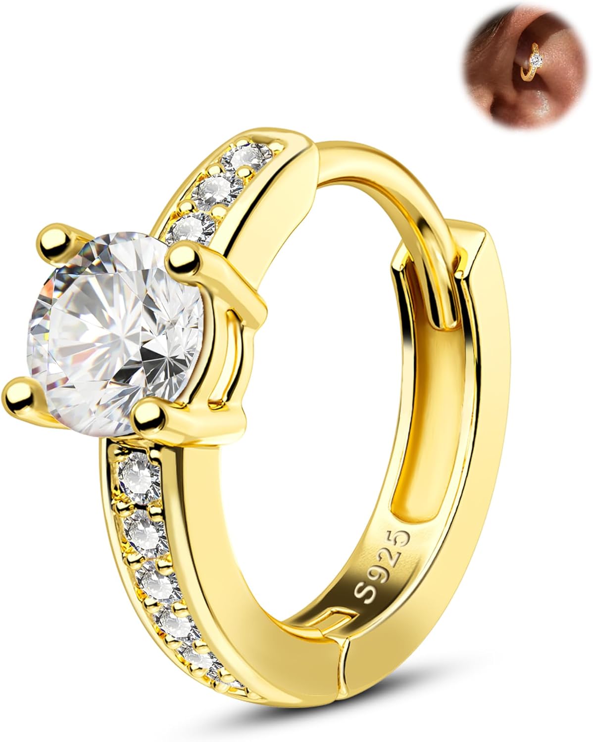 Jewseen 20G 14K Gold Plate Huggie Earing for Women 925 Sterling Silver Huggie Hoop Earrings for Gift Clear CZ Cartilage Earrings Hoop Hypoallergenic Helix Daith Conch Rook Piercing Jewelry