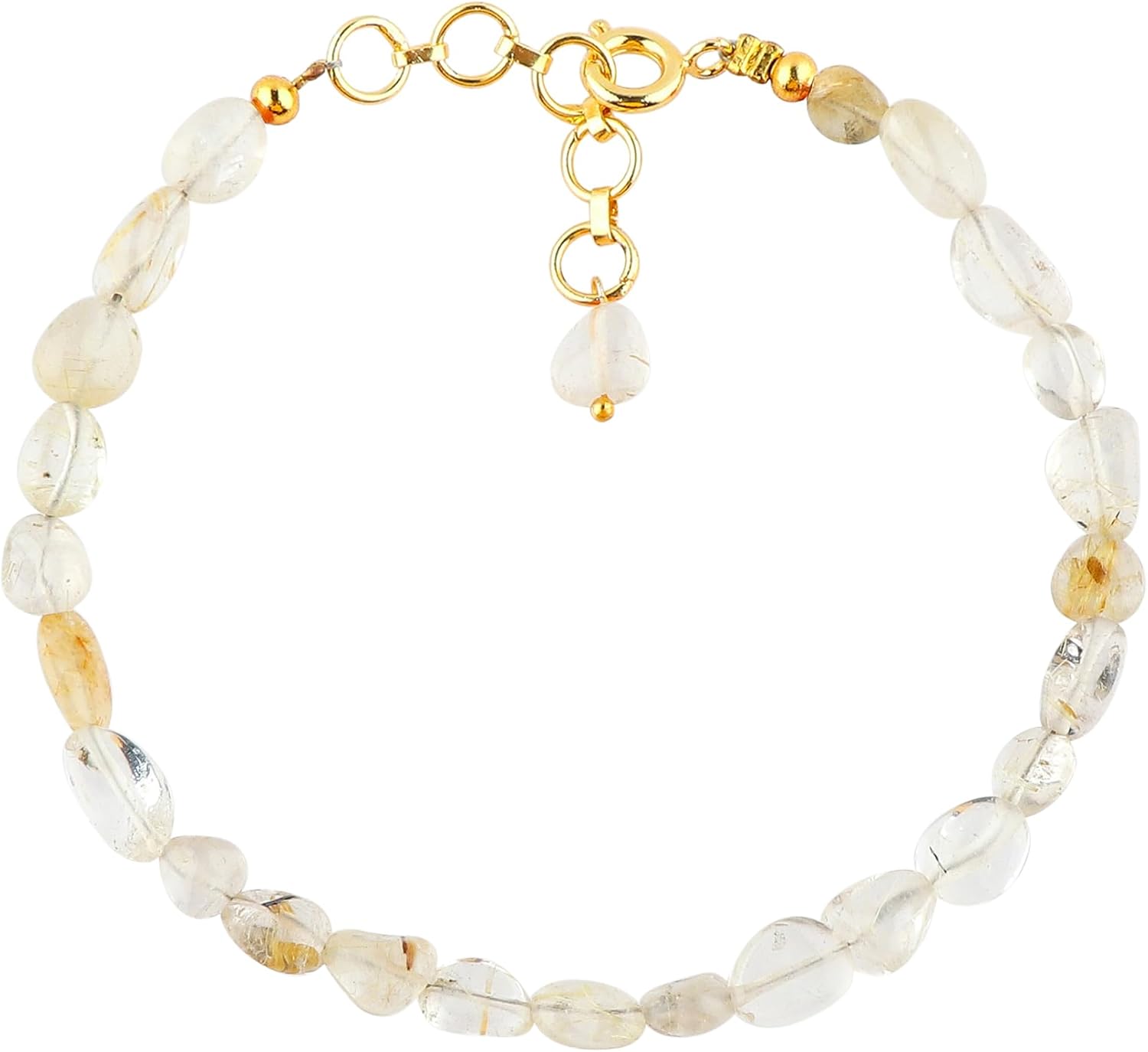 Handmade Bracelet – Natural Golden Rutile Tumble Beads – Energy Healing & Vitality – 14K Gold Plated Adjustable Chain – Dainty 8 Inch – Perfect Gift for Her