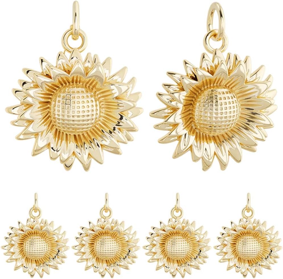 Beebeecraft 1 Box 10Pcs Gold Sunflower Charms 18K Gold Plated Brass Sunshine Charms for DIY Jewelry Earrings Necklace Bracelet Making Finding