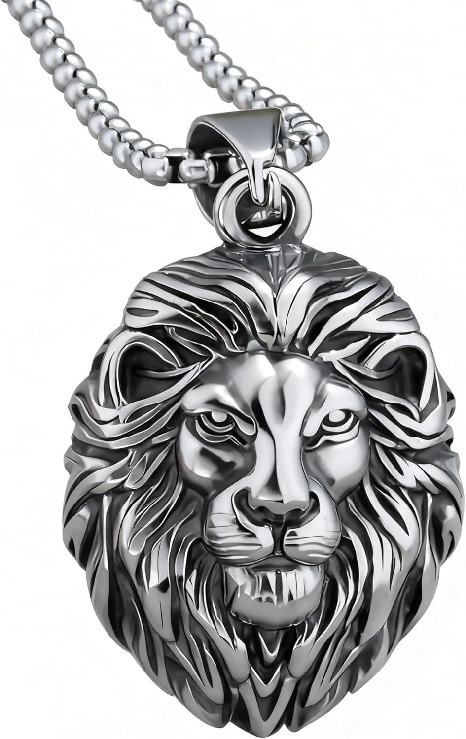 Lion Necklace for Men, Stainless Steel Leo Pendant for Mens