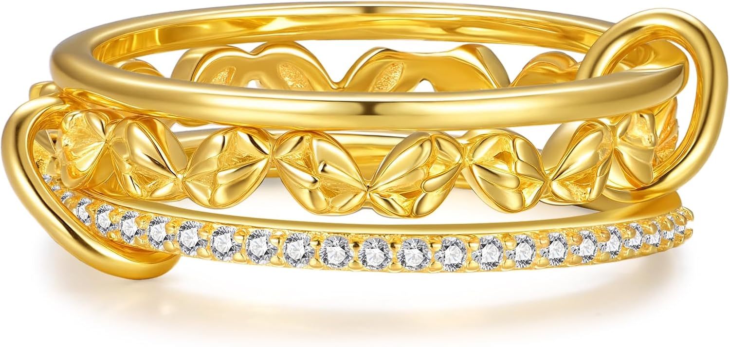Stackable Rings 925 Sterling Silver Butterfly Stackable Ring Multi Ring Stack Cubic Zirconia Two-Toned Connected Bands Stacking Jewelry Gifts for Women