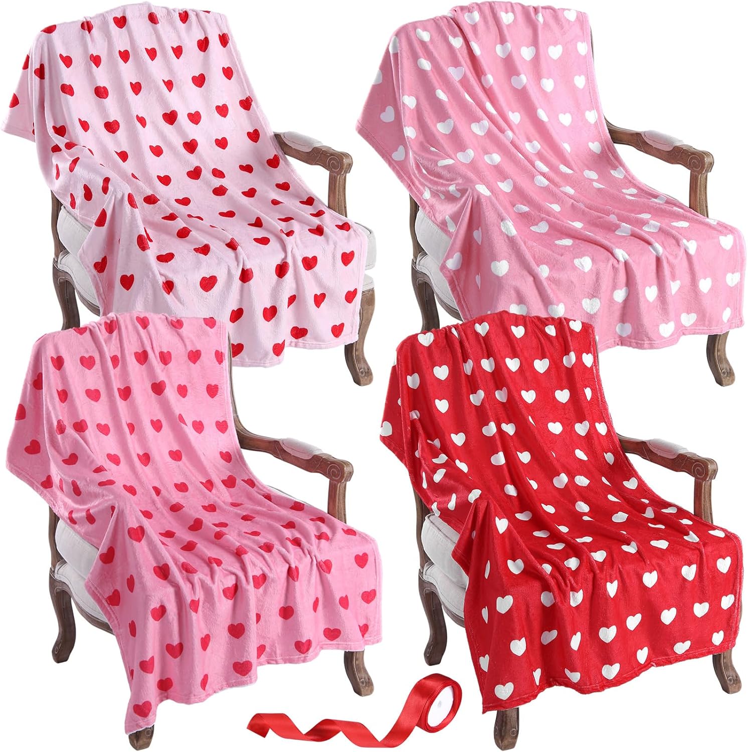 - Romantic Valentine's Day Gift Set: Comes with 4 soft heart flannel throw blankets and a generous 11-yard red ribbon, making it easy to create beautifully wrapped Valentine's Day gifts that bring warmth, love, and a sweet romantic touch to couches, sofas, beds, offices, and all-season decor
