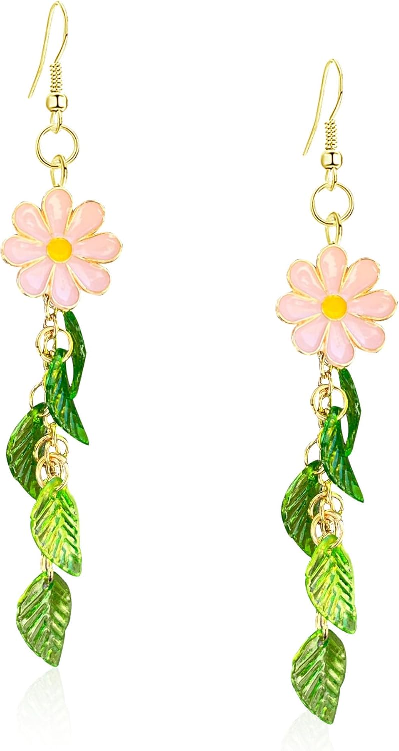 Flower Petal Long Drop Dangle Earring Bohemian Alloy Floral Tassel Statement Hanging Earring for Women Party Jewelry Gift