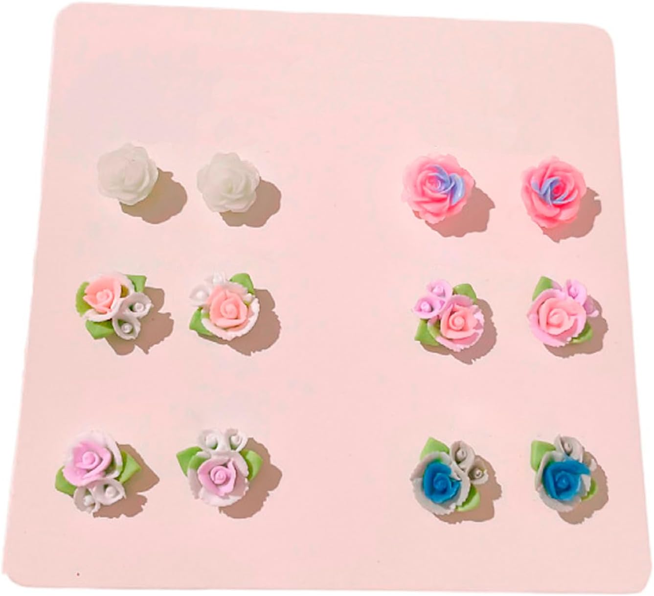 6 pairs of Small fresh macaron colored earrings, camellia earrings, simple bean earrings, female dopamine earrings