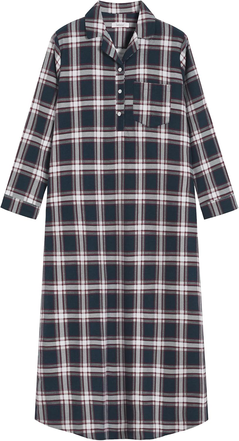 Latuza Women's Flannel Nightgown with Pockets Long Sleeves Full Length