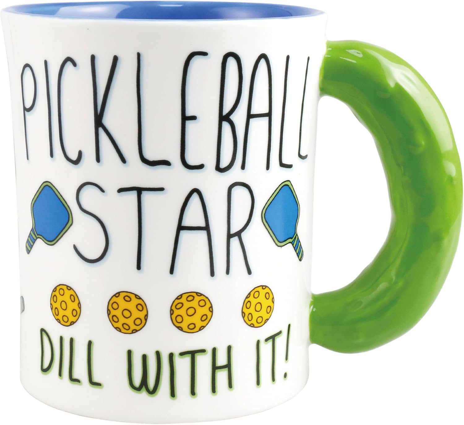 Enesco Our Name is Mud Pickleball Star Dill with it Sculpted Handle Coffee Mug, 16 Ounce, Multicolor