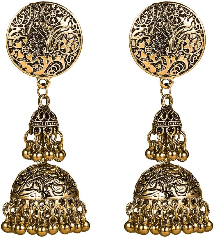 Bohemian Jhumka Dangle Drop Indian Earrings Ethnic Gypsy Tassels Dangle Chandelier Earring Bollywood Temple Jhumki Retro Antique Christmas Jewelry Gifts for Women Festival Wear