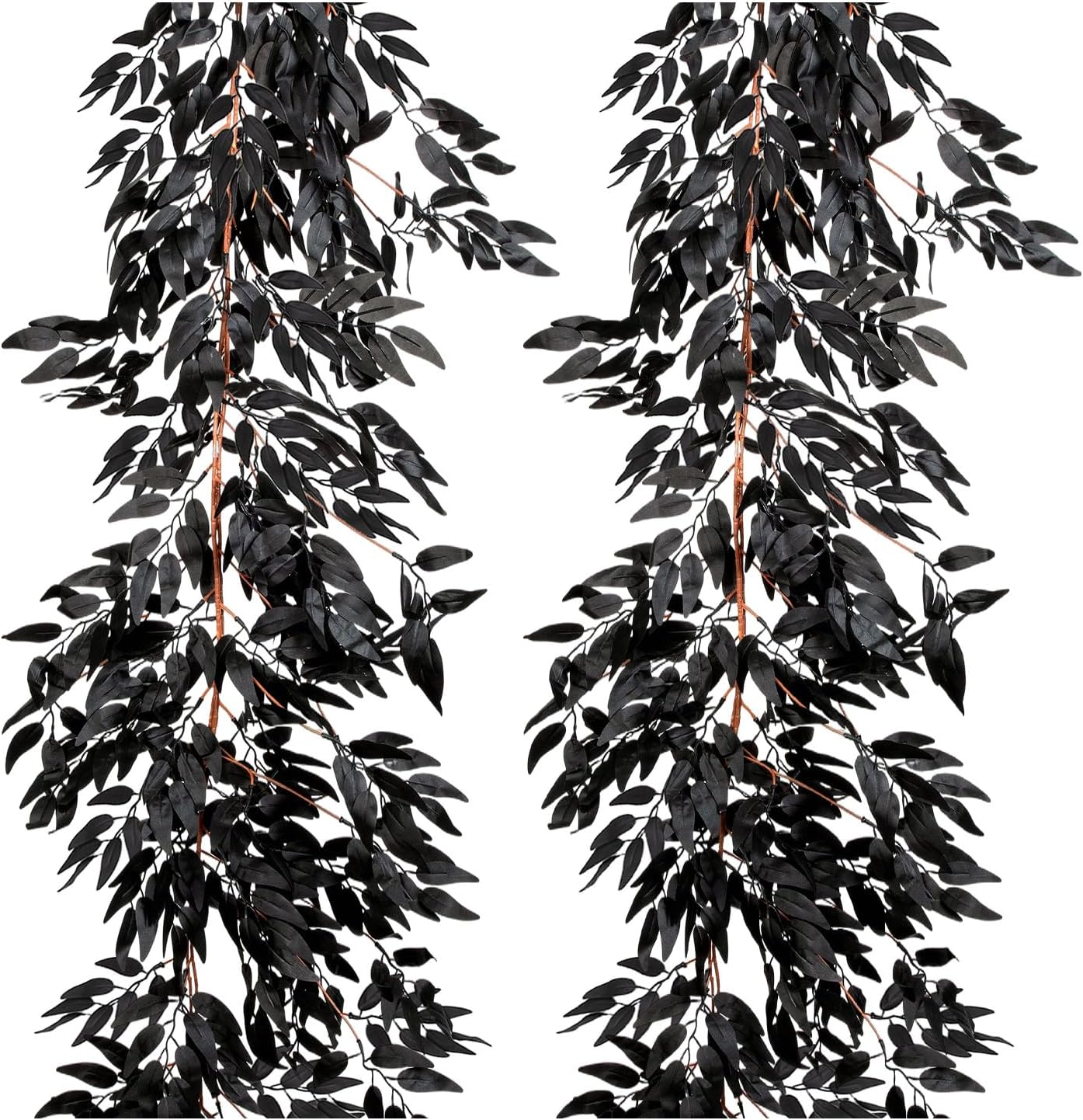Artificial Hanging Willow Vine Twigs, 2Pcs 5.8 FT Halloween Fake Garland Willow Leaves Ivy Plants, Black Silk Faux Greenery Plant for Garden Wedding Birthday Thanksgiving Decor Home Party