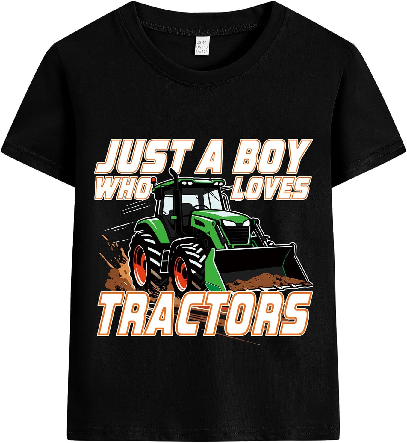 Boys T-Shirt Tee for Kids Short Sleeves Shirt Tractor Excavator Monster Truck Tops Clothes Cotton 2-7T