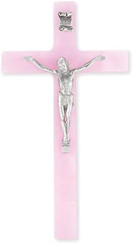 Pink Pearlized Silver Pewter Corpus Religious 7 Inch Wall Cross Crucifix