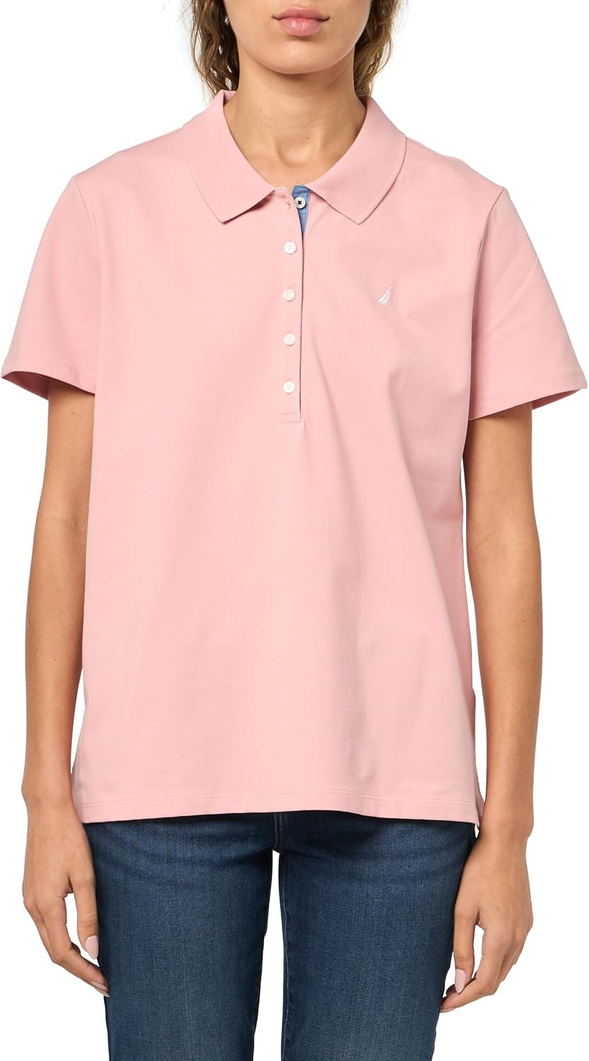Nautica Women's Short Sleeve Button Placket Polo