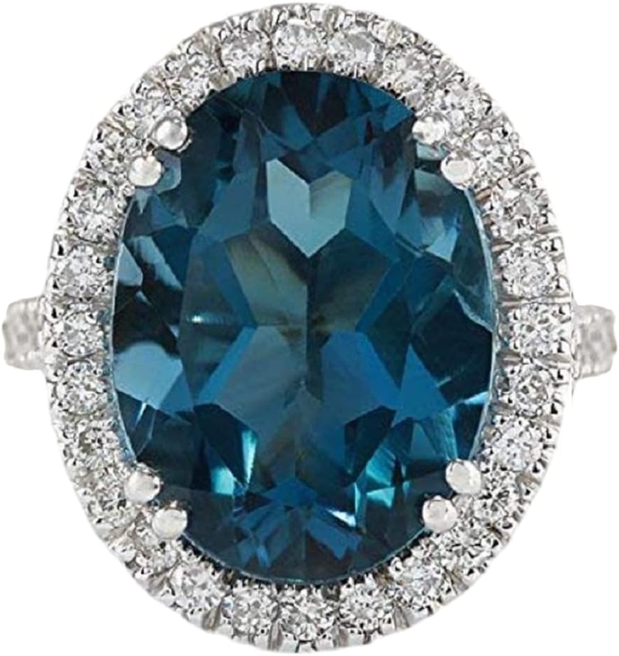 - This ring features an oval-cut blue cubic zirconia center stone surrounded by shimmering transparent cubic zirconia, which is dazzling and reveals the sparkle of elegance and romance.