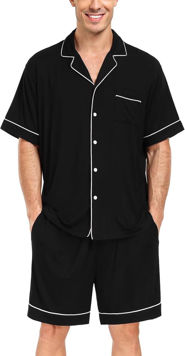 DIKFA Couple Matching Pajamas Set Short-sleeve PJ Women & Men 2Pcs Loungewear Button Down Sleepwear Pjs Sets