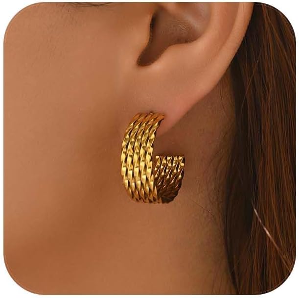 Gold Twisted Hoop Earrings for Women 18K Gold Plated Chunky Drop Dangle Stud Statement Earrings Hypoallergenic Trendy Jewelry Gifts