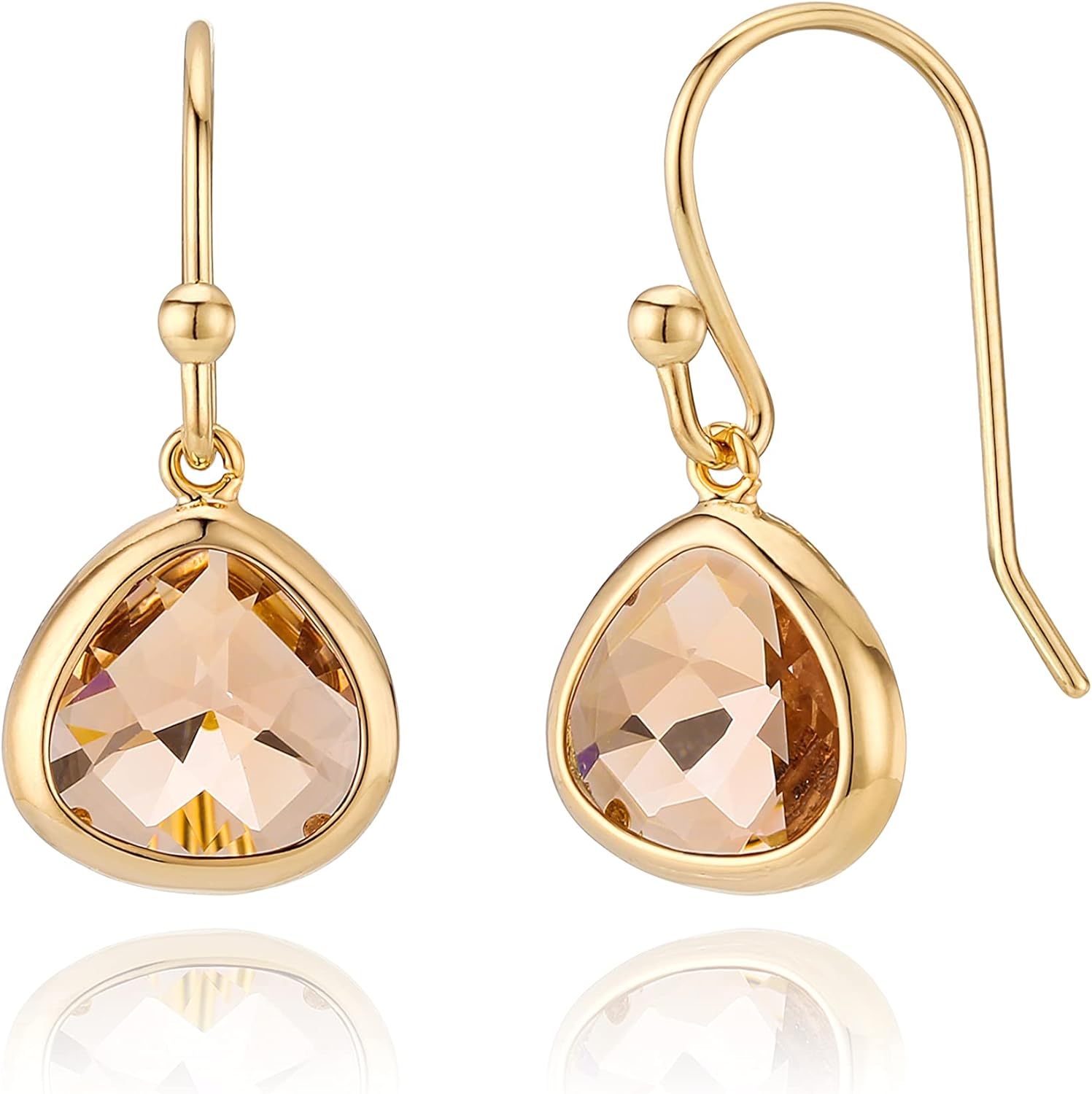 Dainty Simulated Champagne Topaz Dangle Earrings - 14k Gold-Plated, Hypoallergenic, Lightweight Simulated Citrine Drops, Minimalist Birthstone Jewelry by MJLULU