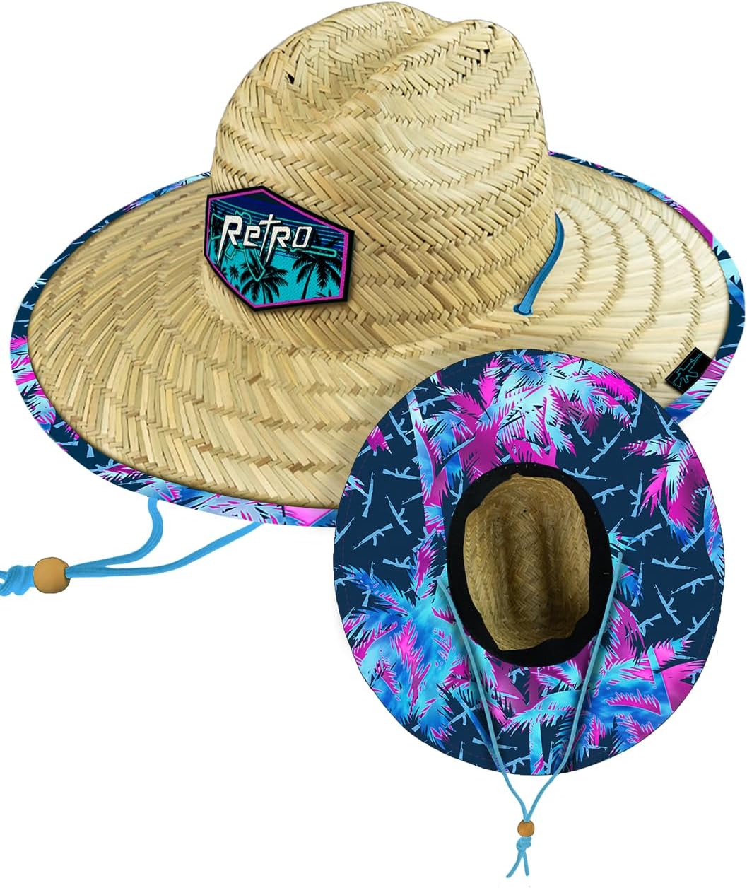 Retro Rifle Men’s Straw Sun Hat-Wide Brim Lifeguard Hat with Custom Under-Brim Prints-Lightweight Sun Protection for Outdoor