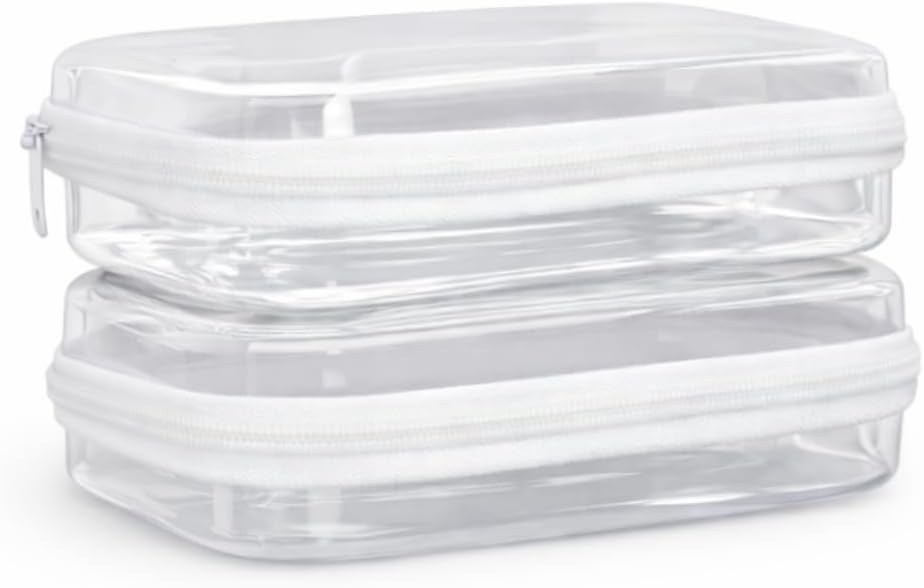Maple & Lark Bliss Bins - Hard Sided Clear Zipper Case for Storage - Professional-Grade Plastic Clear Zipper Pencil Case, Toiletry Pouch, Travel Organizer, Cosmetic Bag, Toy Storage Bins (2 Pack, XS)