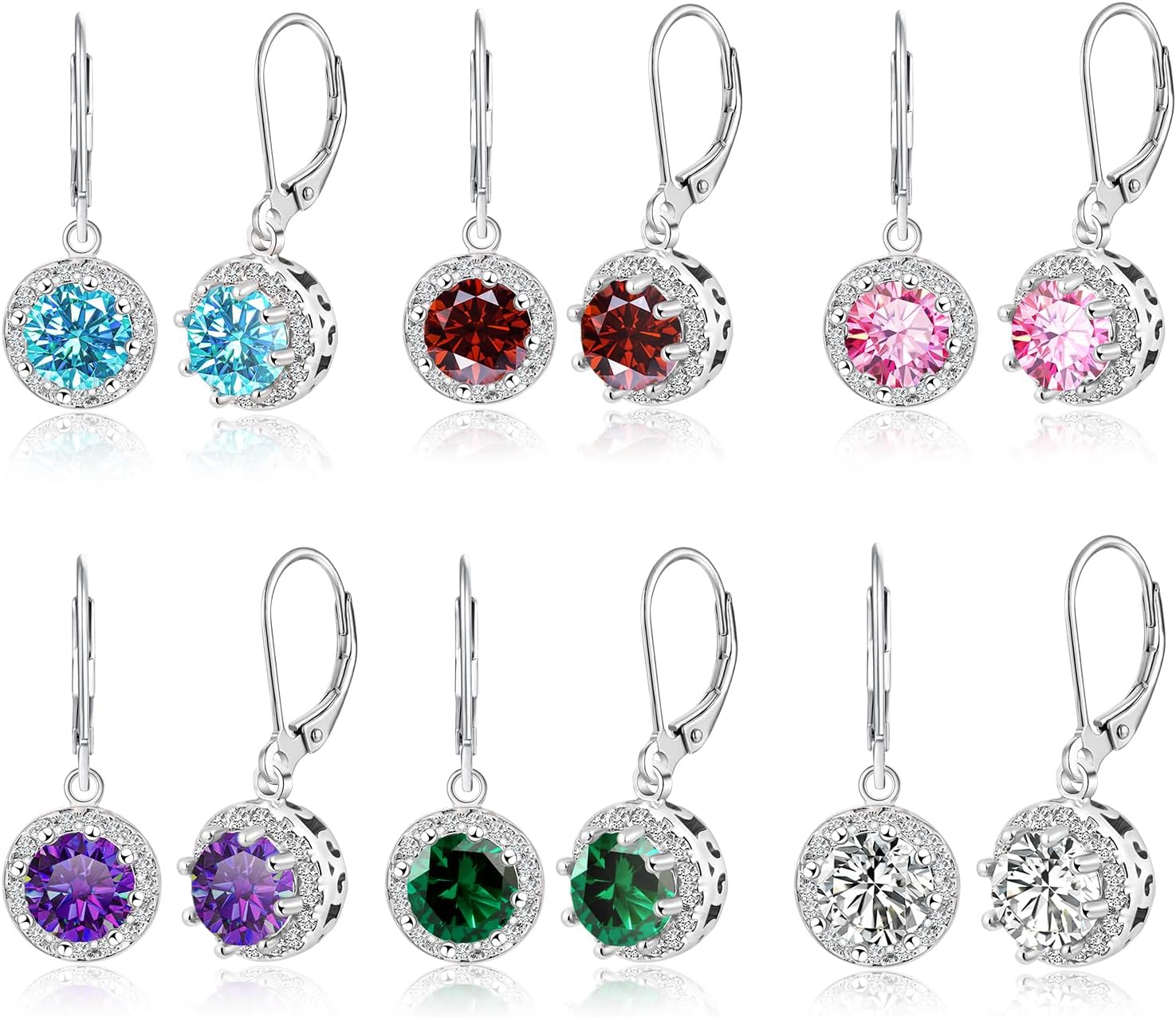 Multicolor Crystal Dangle Studs Earrings Set for Women 925 Silver Hypoallergenic Dangle Earrings Leverback Drop Earring Fashion Cubic Zirconia Leverback Stud Earring Sets Trendy Cubic Zirconia Jewelry Gifts for Women