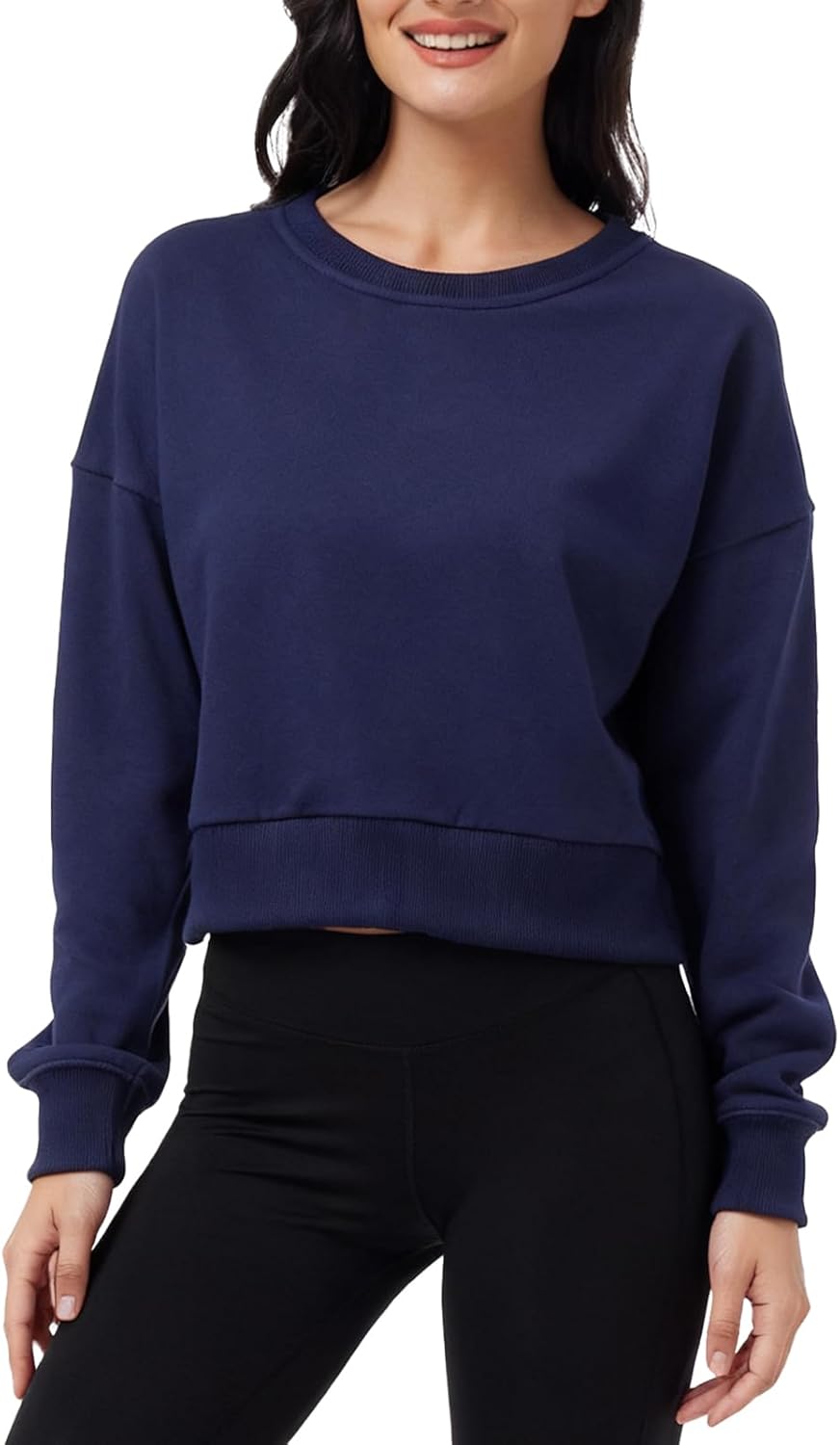 Amazhiyu Women's Cropped Sweatshirt French Terry Crew Neck Long Sleeve Pullover