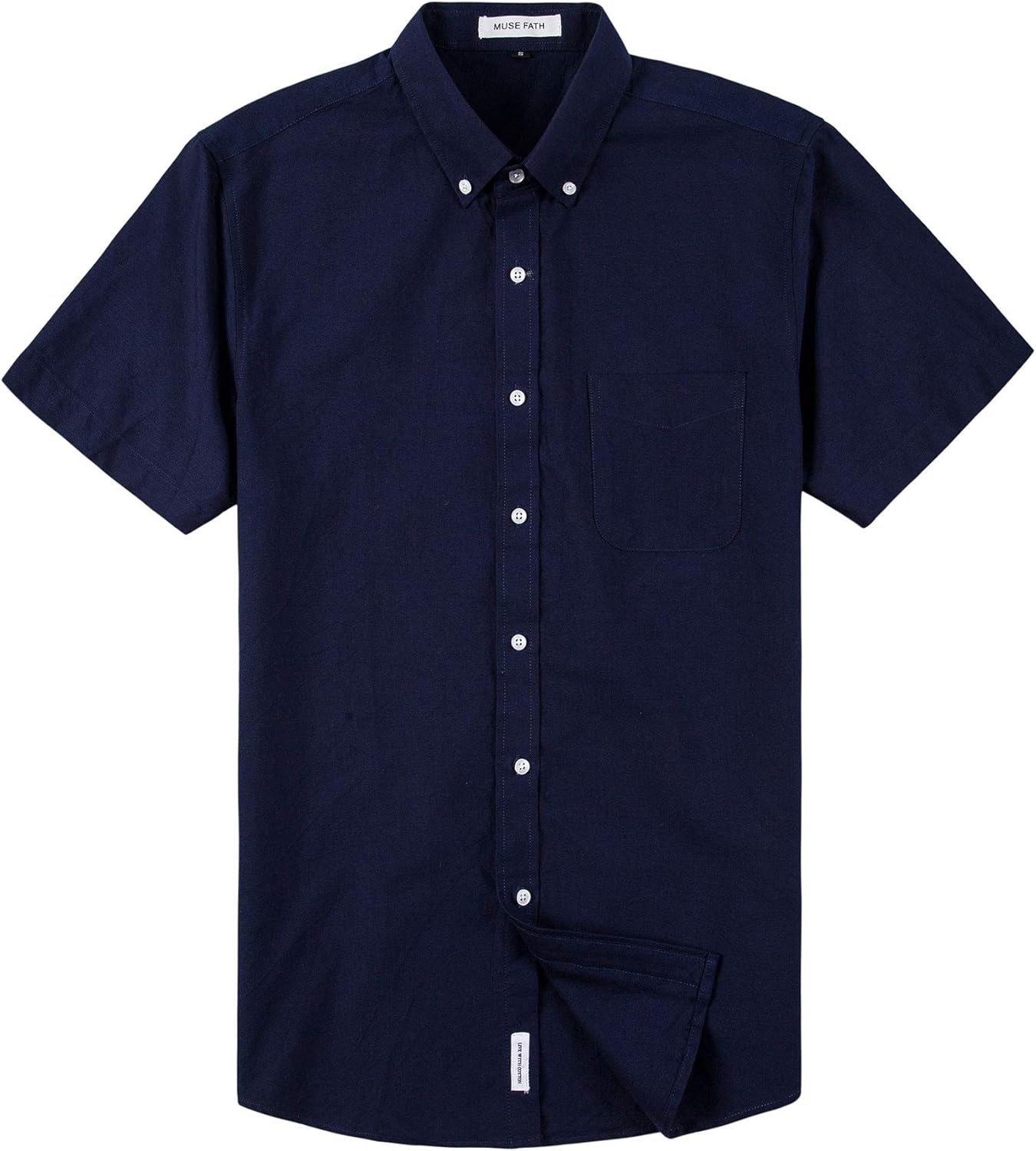MUSE FATH Men's Casual Oxford Short Sleeve Regular Fit Chest Pocket Dress Shirt