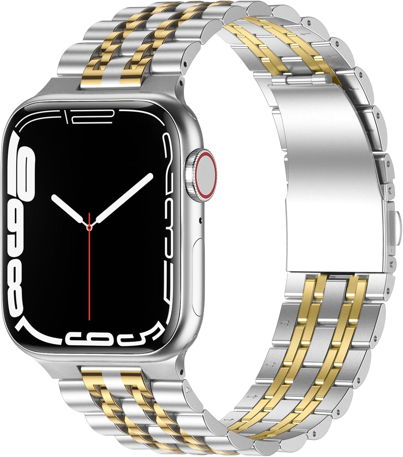 Anlinser Metal Bands Compatible with Apple Watch Band 49mm 46mm 45mm 44mm 42mm for Women Men, Stainless Steel Replacement Strap for iWatch Ultra 3/2/1 Series 11 10 9 8 7-1 SE (Silver Gold)