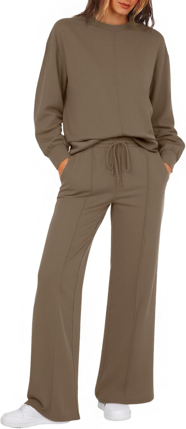 Yousify Women's 2 Piece Lounge Sets Casual Long Sleeve Tops Wide Leg Pants Loose Tracksuit Fall Travel Outfits