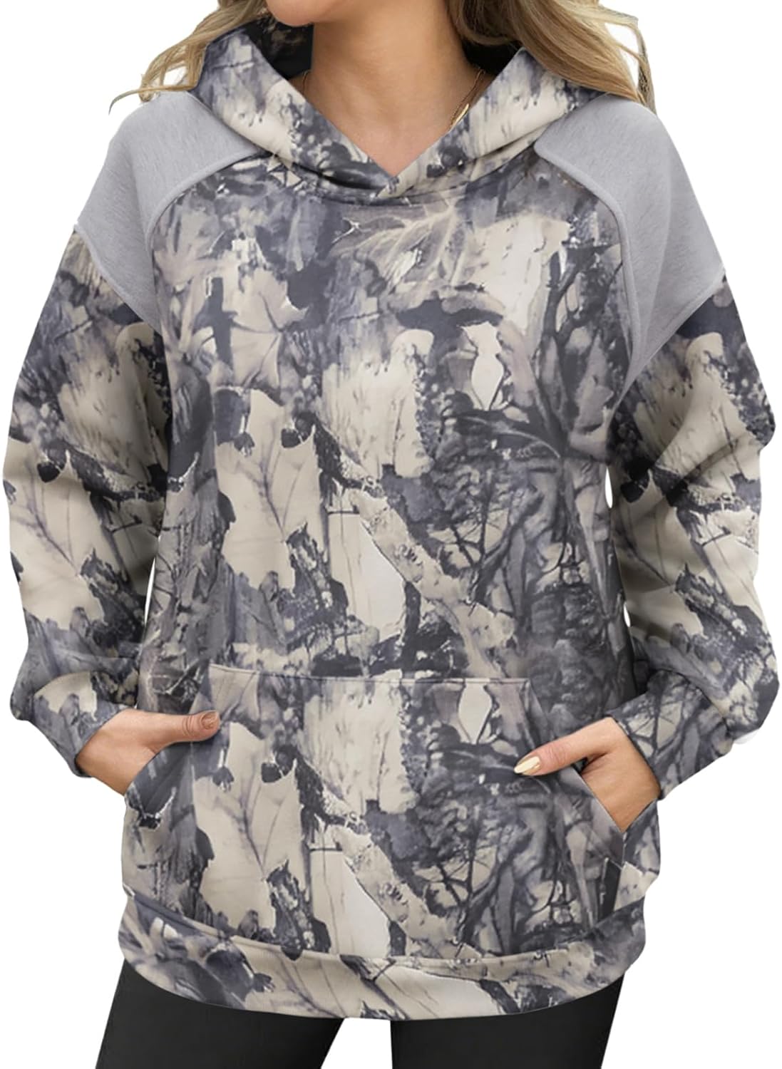Yousify Womens Camo Hoodies Oversized Fleece Sweatshirts Fall Fashion Long Sleeve Pullover Winter Clothes with Pockets