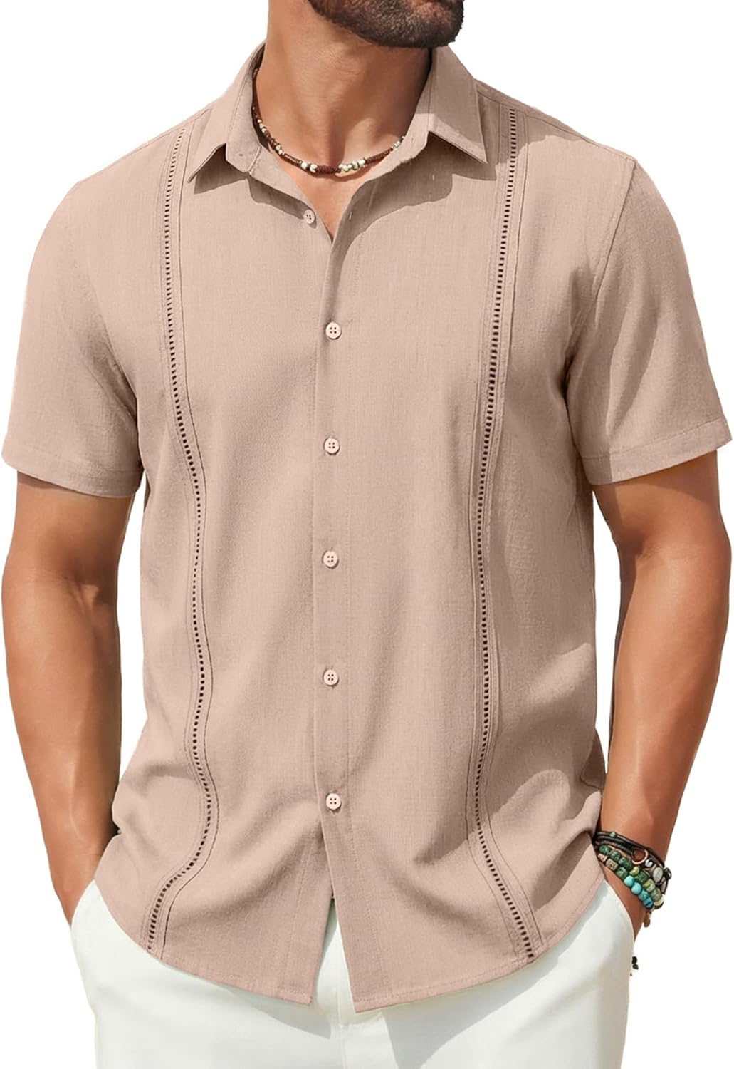 COOFANDY Mens Short Sleeve Cuban Guayabera Shirt Casual Summer Beach Button Down Shirts