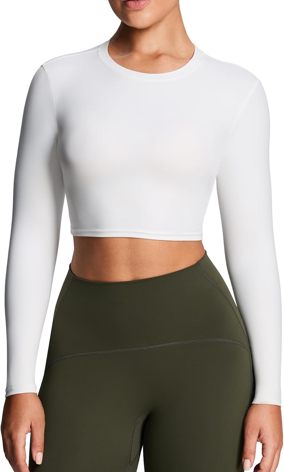 Aoxjox Long Sleeve Crop Tops for Women Classic Longline Workout Fitness Cropped T Shirt Top