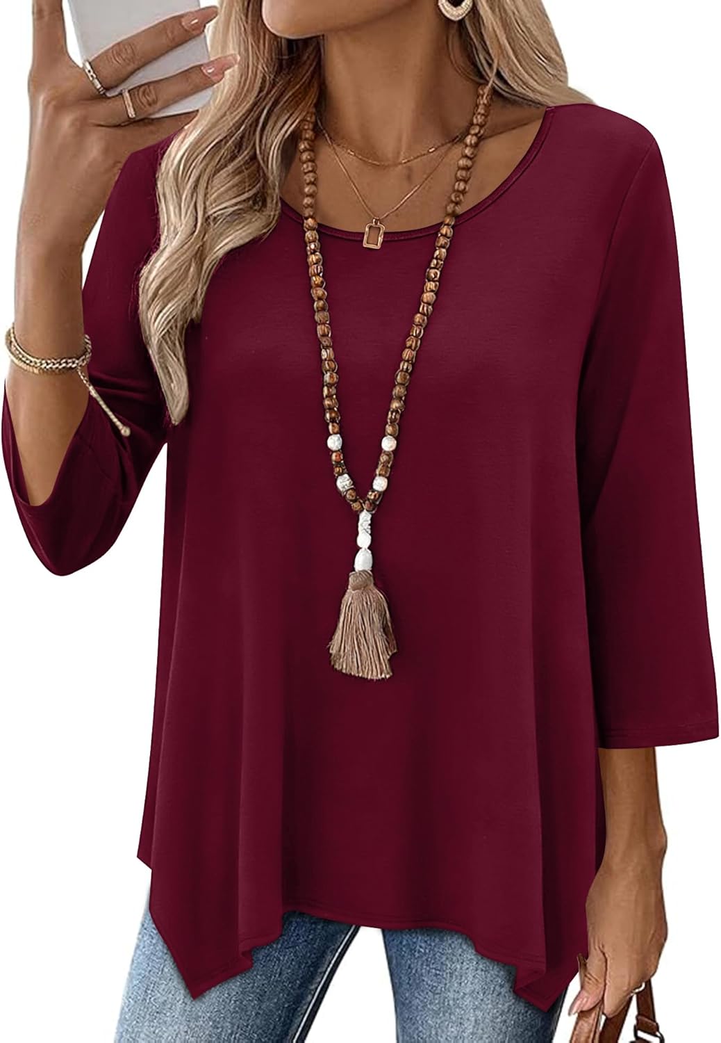 AKEWEI 3/4 Length Sleeve Womens Tunic Tops Loose Fit Blouses Dressy Casual Crew Neck Tees S-3XL