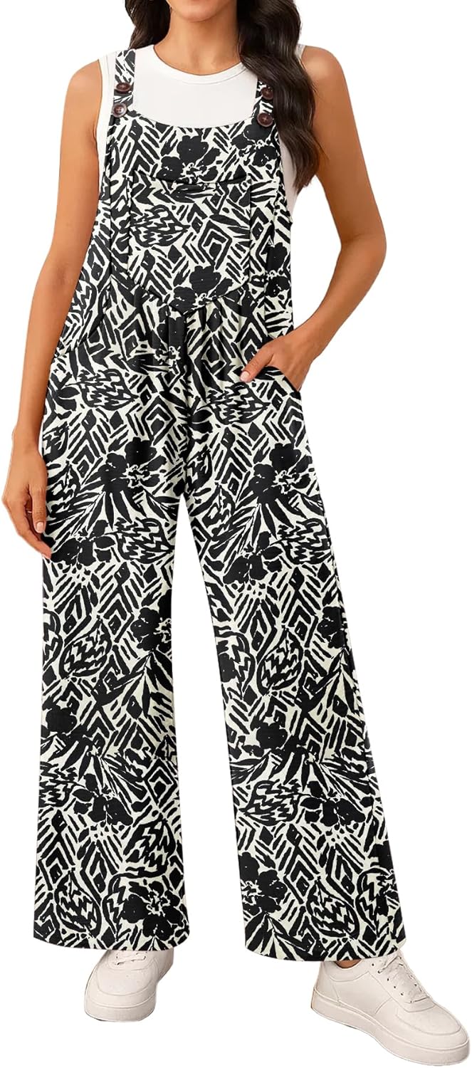 NILOUFO Women Wide Leg Bib Overalls Casual Loose Jumpsuits Sleeveless Adjustable Strap Rompers with Pockets