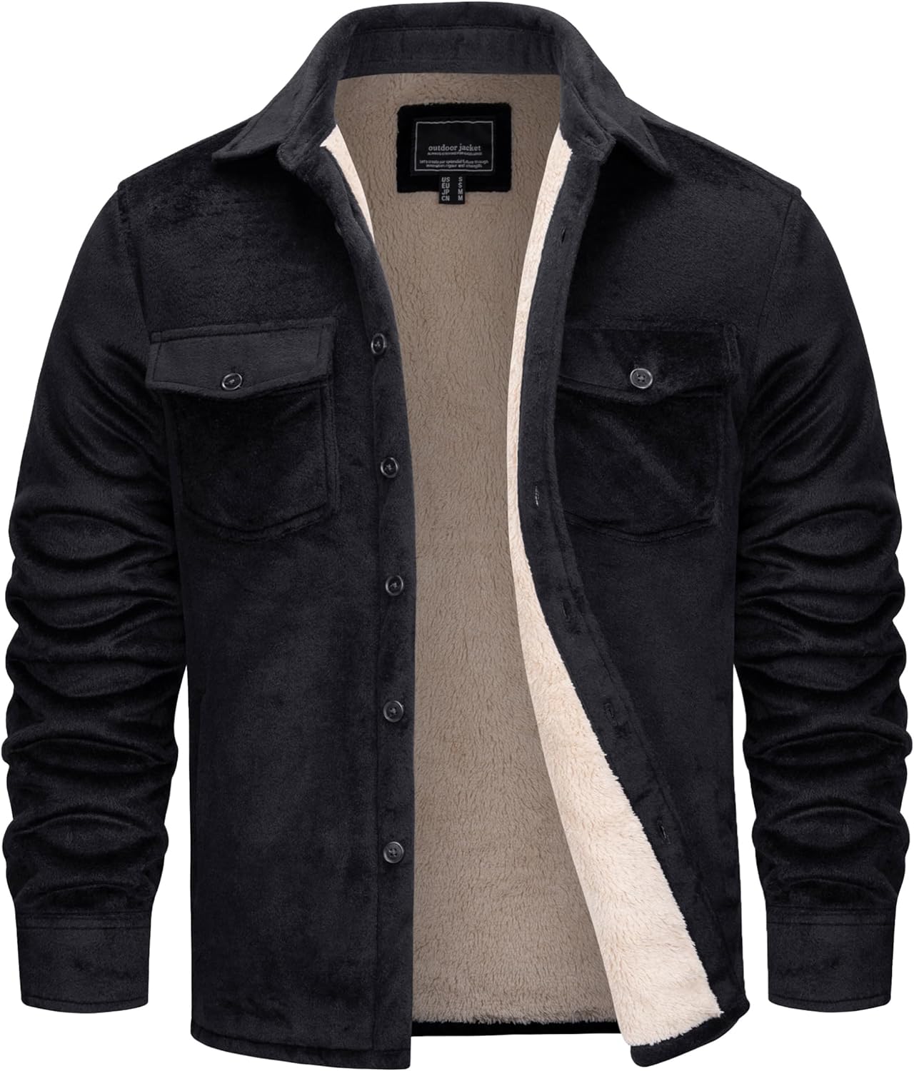 Cotrasen Men's Flannel Shirt Fleece Lined Flannel Jacket Cotton Button Up Plaid Shirt Warm Heavyweight Fall Winter Coat