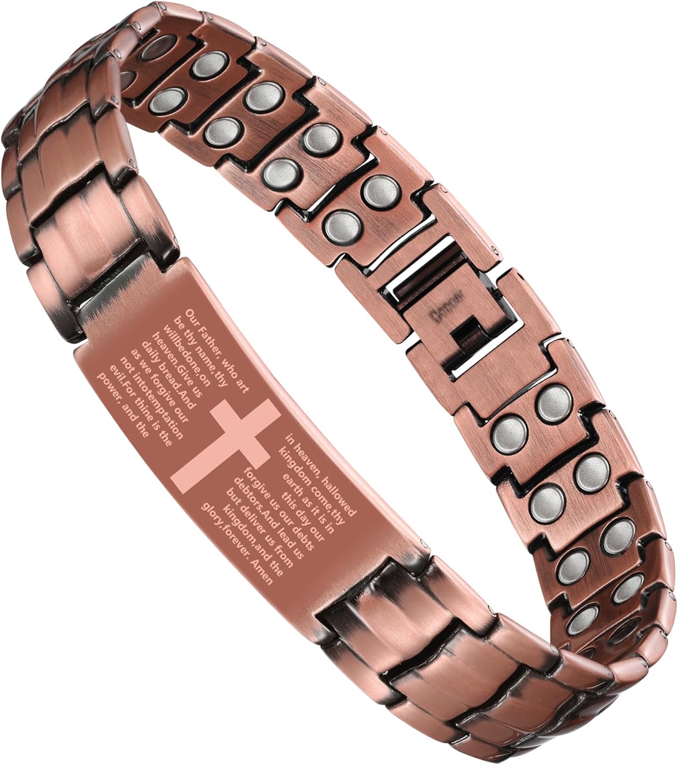 - Faith-Inspired Design – Matthew 6:9-13: Engraved with the Lord’s Prayer (Matthew 6:9-13), this men’s copper bracelet blends timeless faith with everyday style.