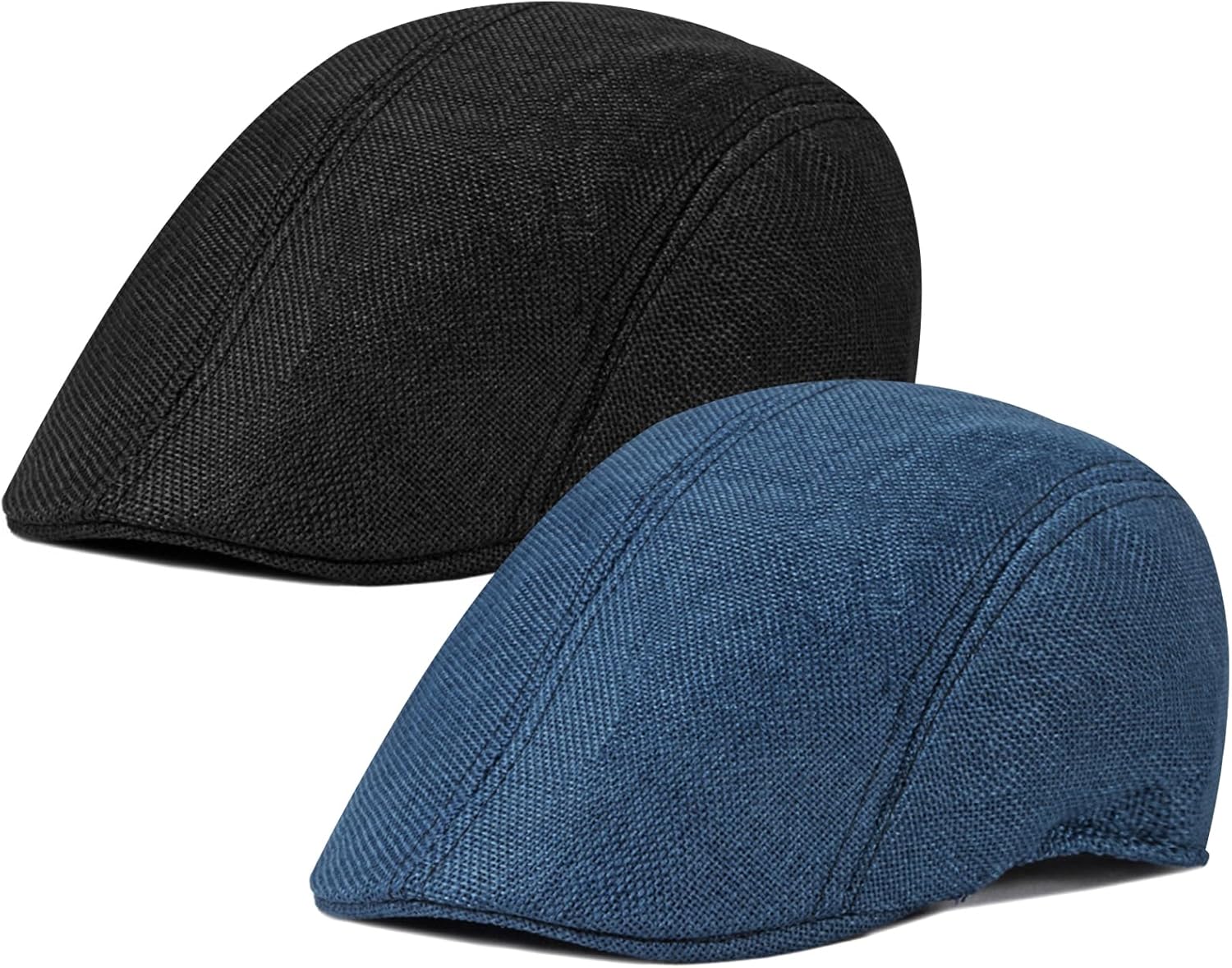 2 Pack Men's Newsboy Hat Imitation Linen Beret Ivy Cap Irish Cabbie Driving Hunting Hats