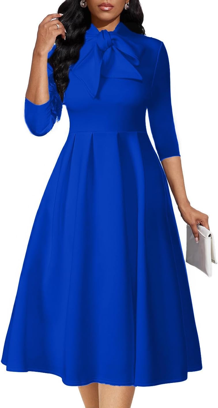 Church Dresses for Women Midi A-Line Fit and Flare Dress 3/4 Sleeve Elegant Party Dress