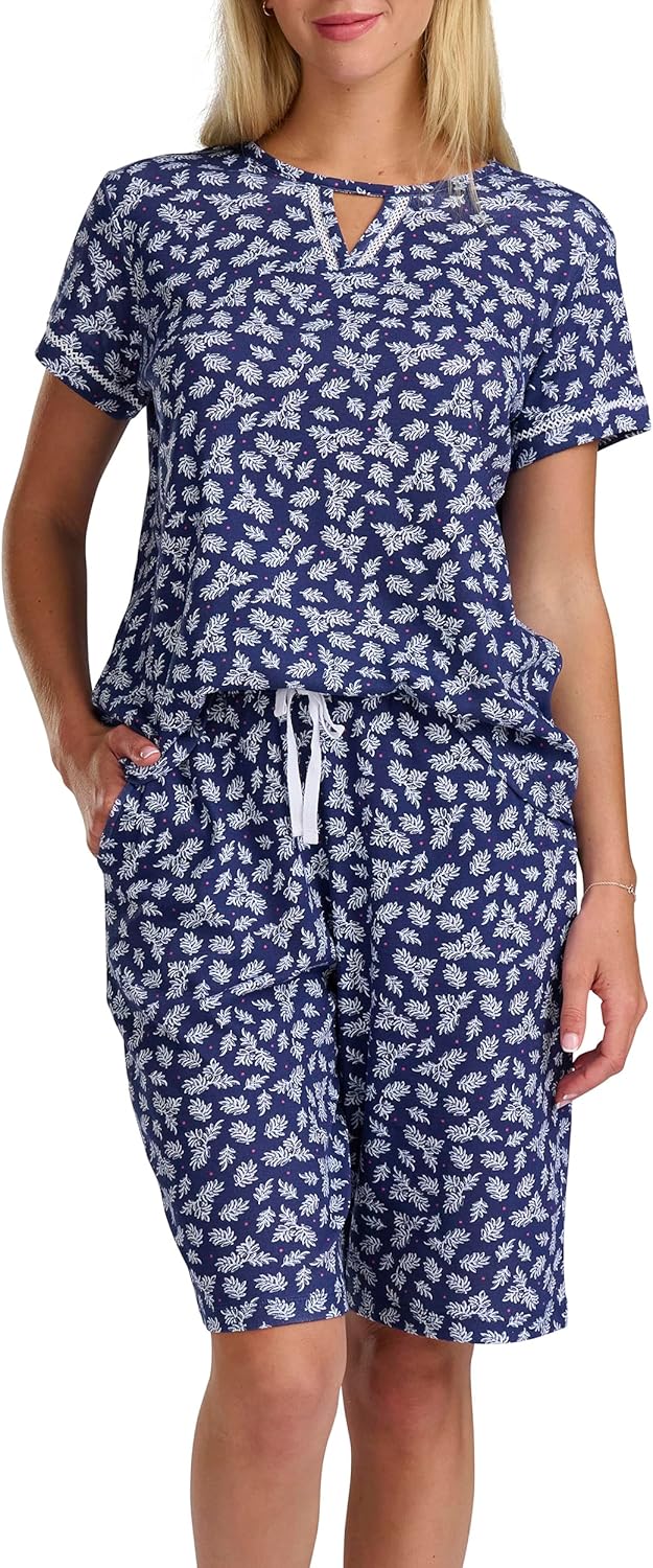 Karen Neuburger womens Keyhole Short Sleeve Top and Bermuda Short Pajama Set