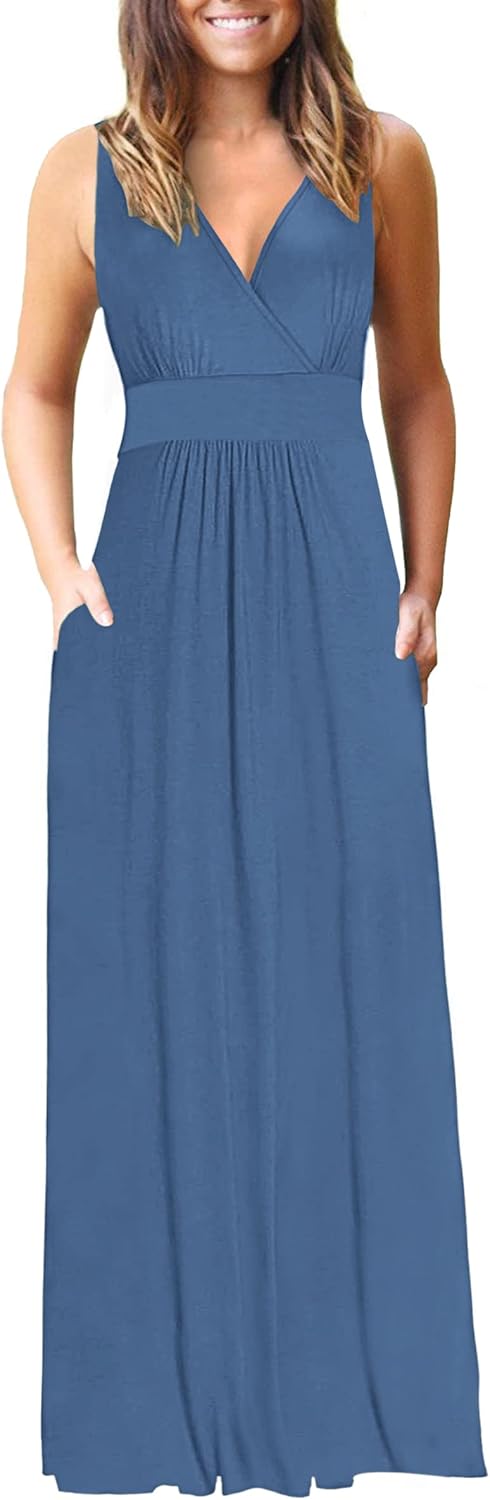 AUSELILY Women's Sleeveless Formal Dress Deep V Neck Loose Plain Cocktail Long Maxi Dresses with Pockets 2026 New