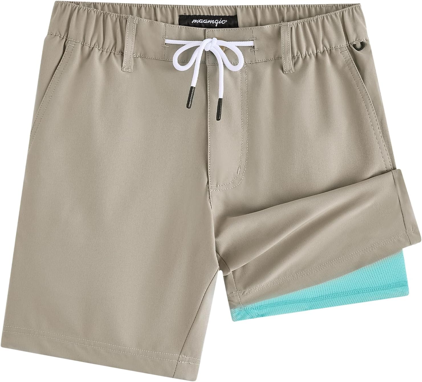 maamgic Boys Casual Shorts with Compression Liner & Zipper Pockets Stretch Fit School Uniform Shorts for Golf,Running