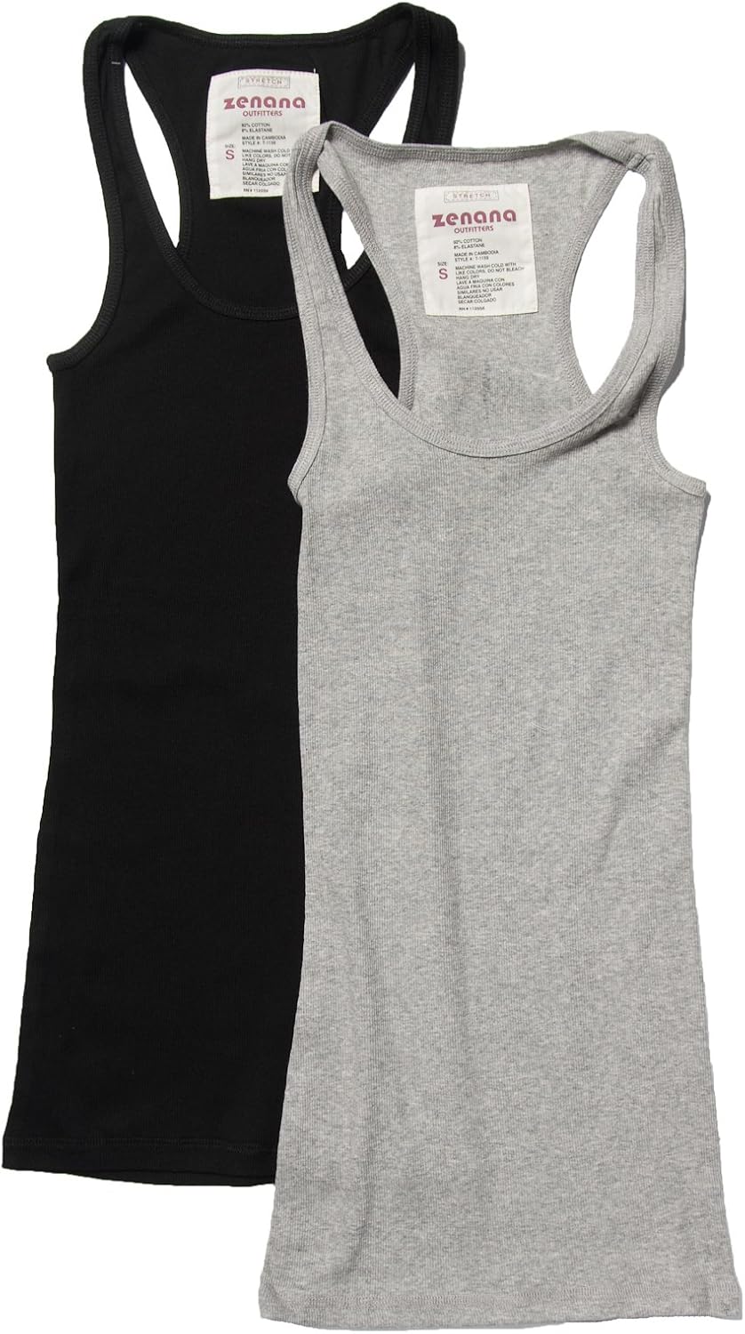 2 Pack Zenana Women's Basic Ribbed Tank Top Large Black, H Gray