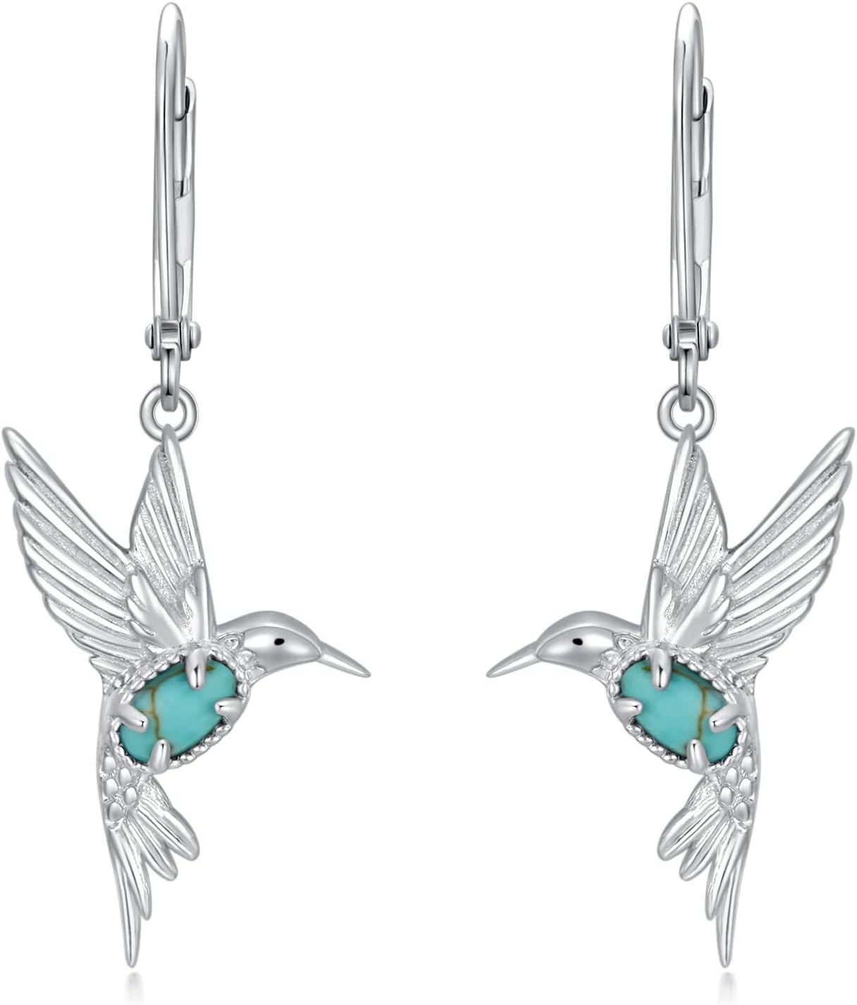 Hummingbird Earrings 925 Sterling Silver Natural Gemstone Hummingbirds Drop Dangle Earring Animal Jewelry Gifts for Women