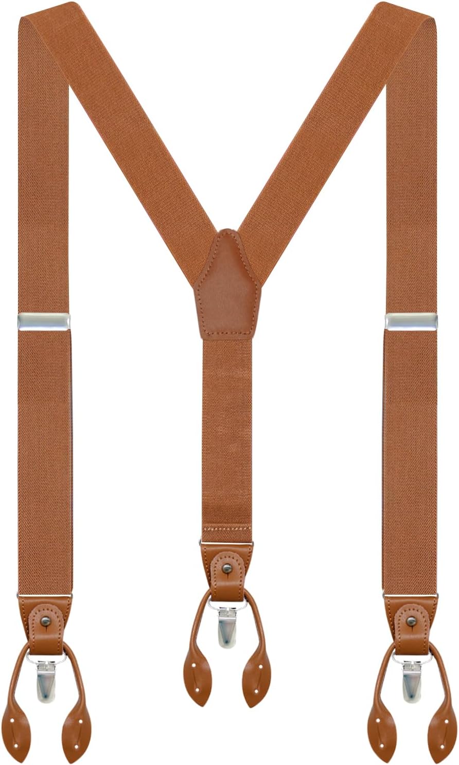 Suspenders for Men Men's Suspenders Leather Button End & Clip 1.4" Wide Adjustable Elastic Y-Back Braces