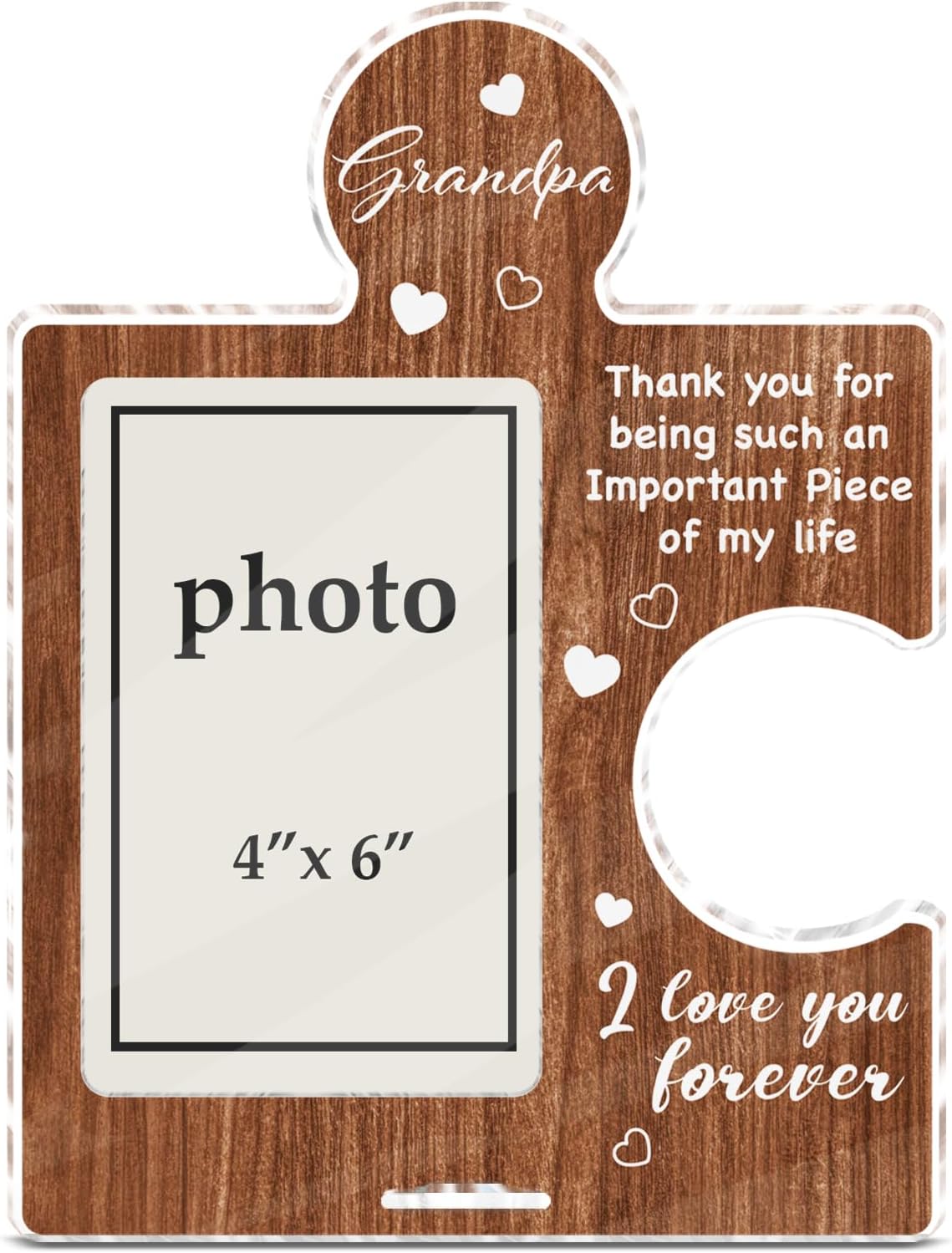 Grandpa Gifts from Grandkids, Christmas Fathers Day Grandfathers Day Birthday Gifts for Grandpa, Acrylic Puzzle Picture Frame Gift for Grandfather, 4 x 6 Inch Photo