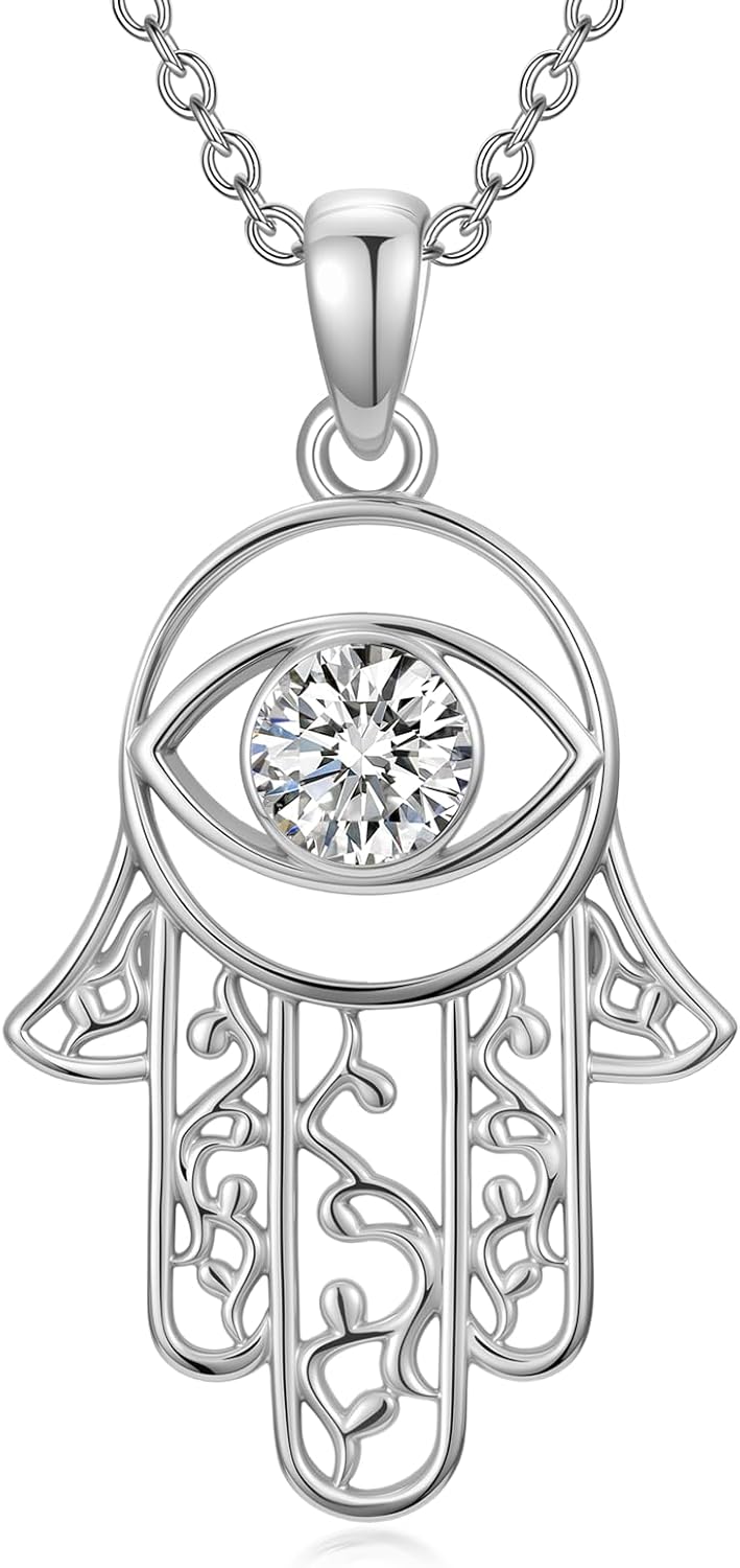 Hamsa Hand Necklace for Women Evil Eye and Hamsa necklace 925 Sterling Silver Pendant Jewelry Gift