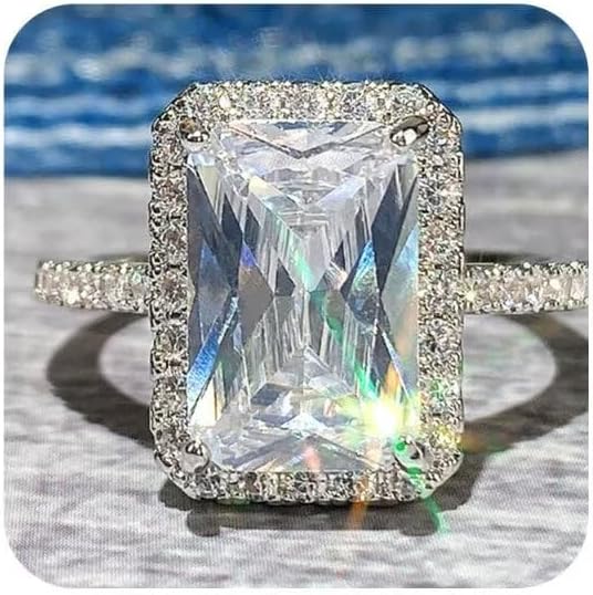 HUUGVBCO 925 Sterling Silver Shiny Gemstone Ring Cubic Zirconia Rings CZ Diamond Ring Eternity Engagement Wedding Band Ring for Women Fashion Simple Rings 10#