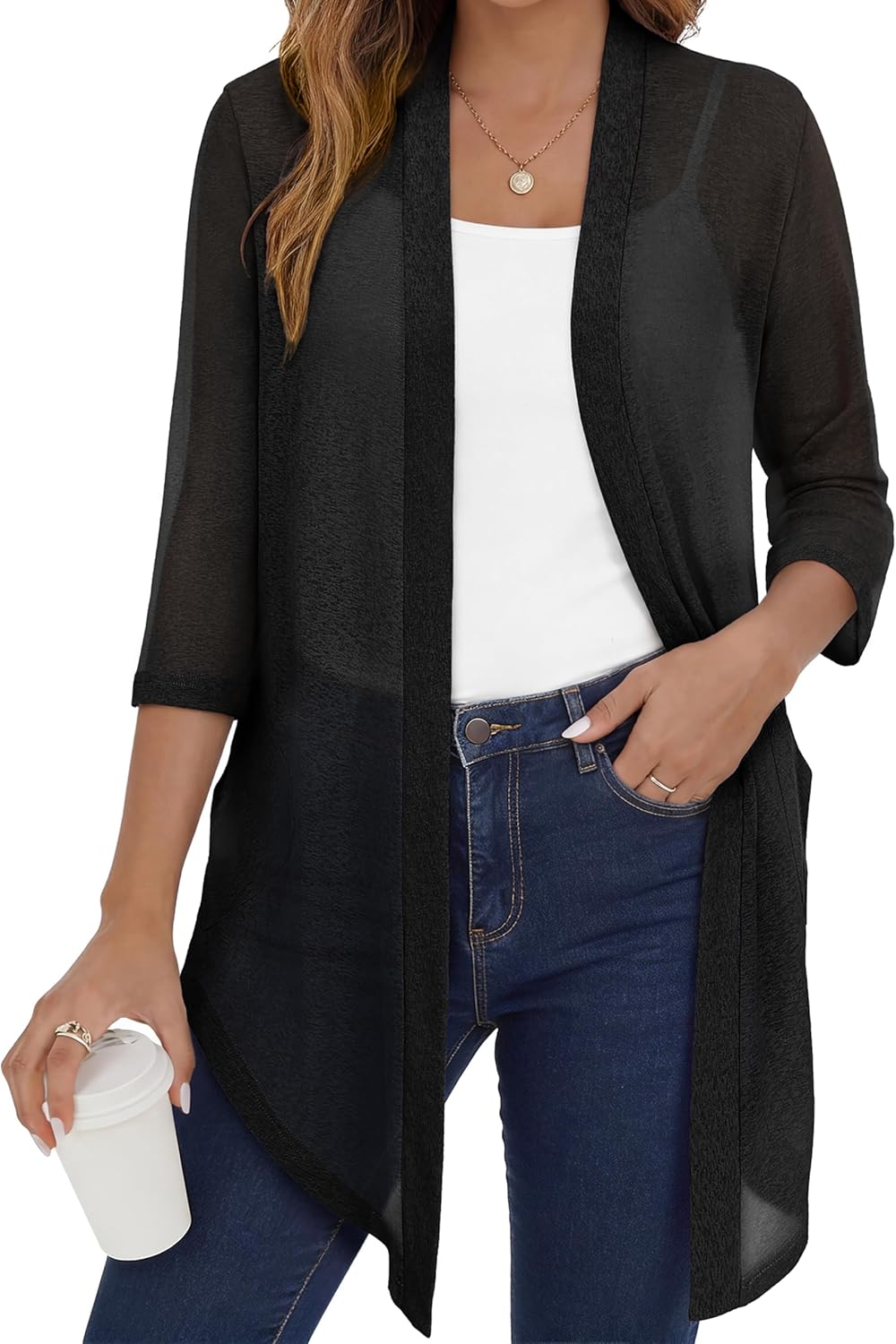 VIISHOW Women's Lightweight 3/4 Sleeve Open Front V-Neck Cardigans with Pockets Summer Casual Draped Cover-Ups