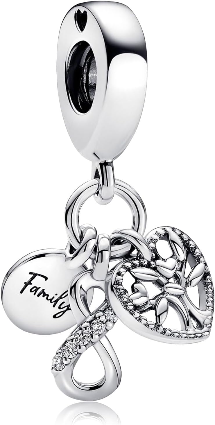 925 Sterling Silver Charms for Women Bracelet Necklace Mom Daughter Family Infinity Heart Charm Pendant Sister Friends Beads Jewellery Gift for Women Girls